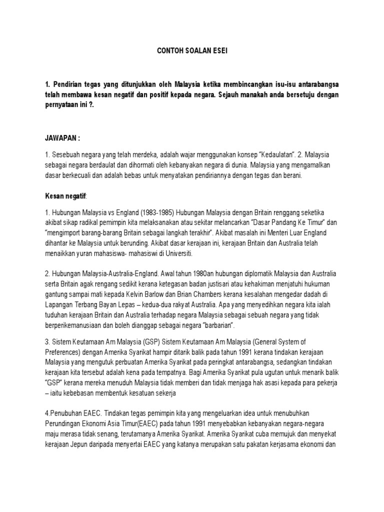 Contoh Soalan Esei Kepentingan Dasar Luar Malaysia